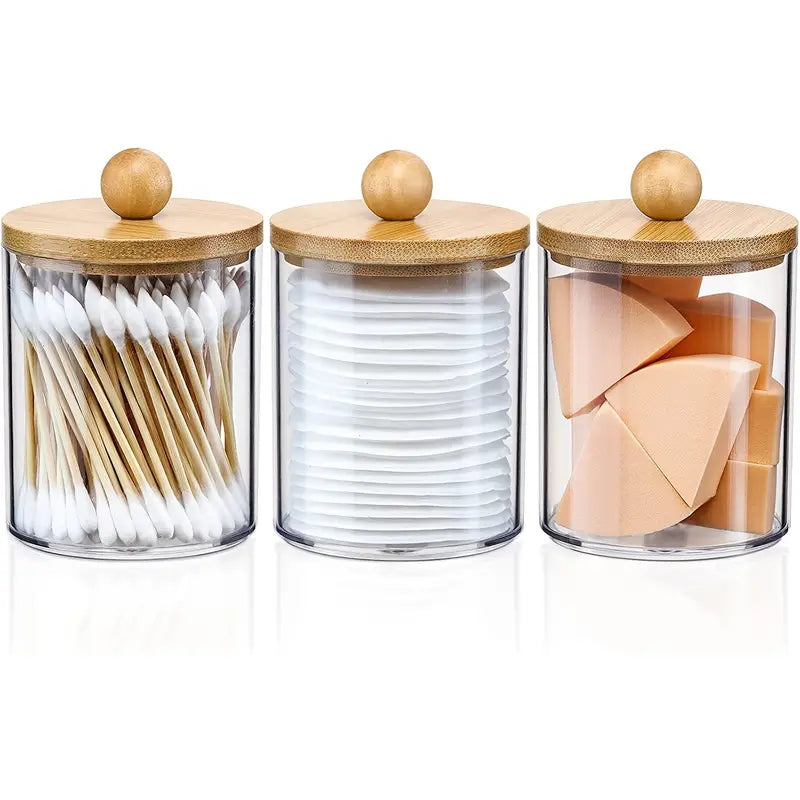 Bamboo Lids Apothecary Jars for Bathroom Storage Set